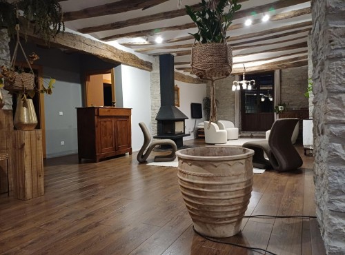 Casa rural muy amplia con capacidad de 16-20 personas totalmente reformada. Se compone de 8 habitaciones, 7 baños y un aseo. Cuenta también con tres grandes salas de estar, dos cocinas, una de ellas muy amplia con gran isla central y una zona de comedor con capacidad holgada para 20 comensales. Las salas de estar están equipadas con TV y hay billar en una de ellas, futbolín en otra.